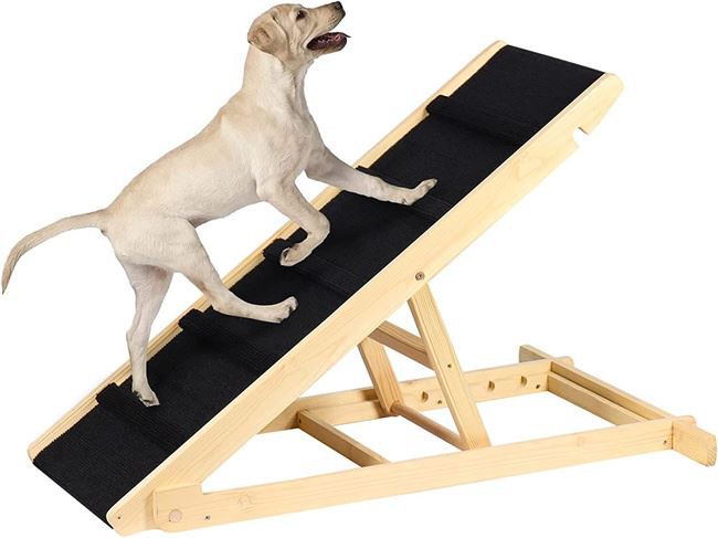 ·Rampa Sikura u B'saħħitha: Magħmula minn qafas tal-injam premium u 5 strixxi tal-injam żejda, dan is-sellum tal-annimali domestiċi jipprovdi appoġġ qawwi u jżomm biżżejjed stabbiltà biex jagħti lill-pet tiegħek esperjenza ta 'tixbit sigur. Naqqas il-biża' b'mod effettiv u tiżgura bis-sħiħ is-sigurtà tal-pet tiegħek meta tuża.